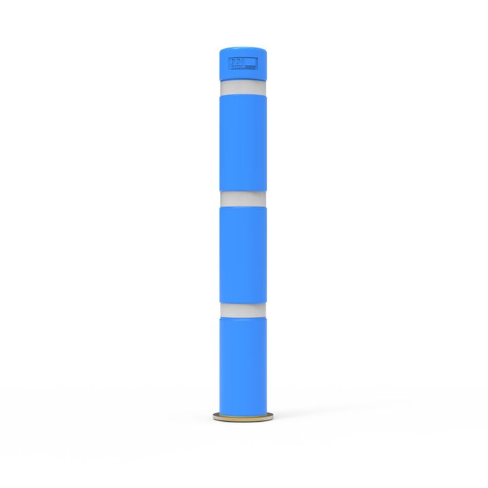 - Shock Absorbing Bollard 140mm Core Drilled - Galvanised with Disabled Blue Polyethylene Sleeves and White Reflective